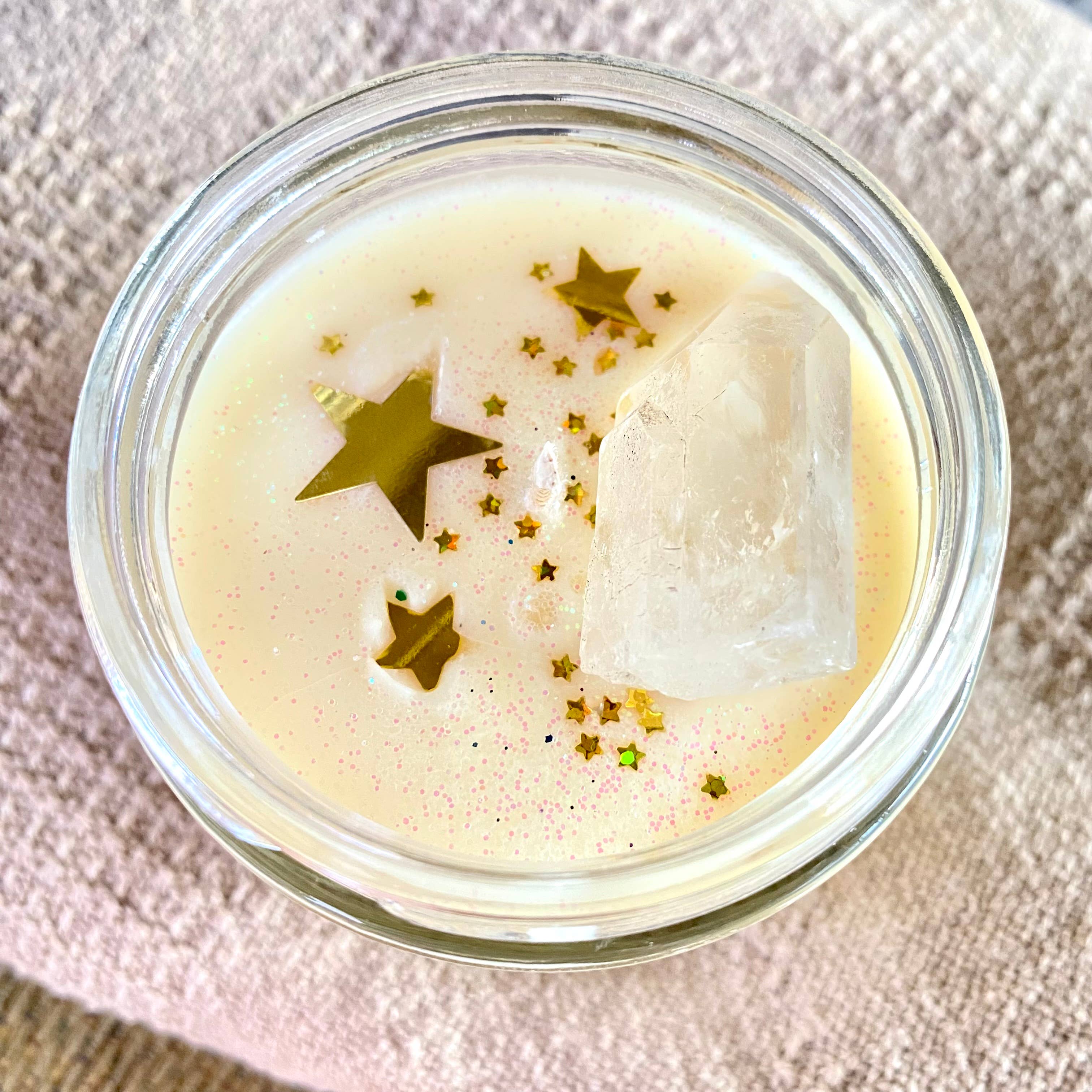 The blend of ginger, jasmine, honeysuckle, and clary sage creates a harmonious scent that uplifts the spirit and invites positive energy into your space. We’ve also included a quartz crystal — known for its ability to amplify intentions and promote clarity, making it the perfect companion for manifestation and abundance.