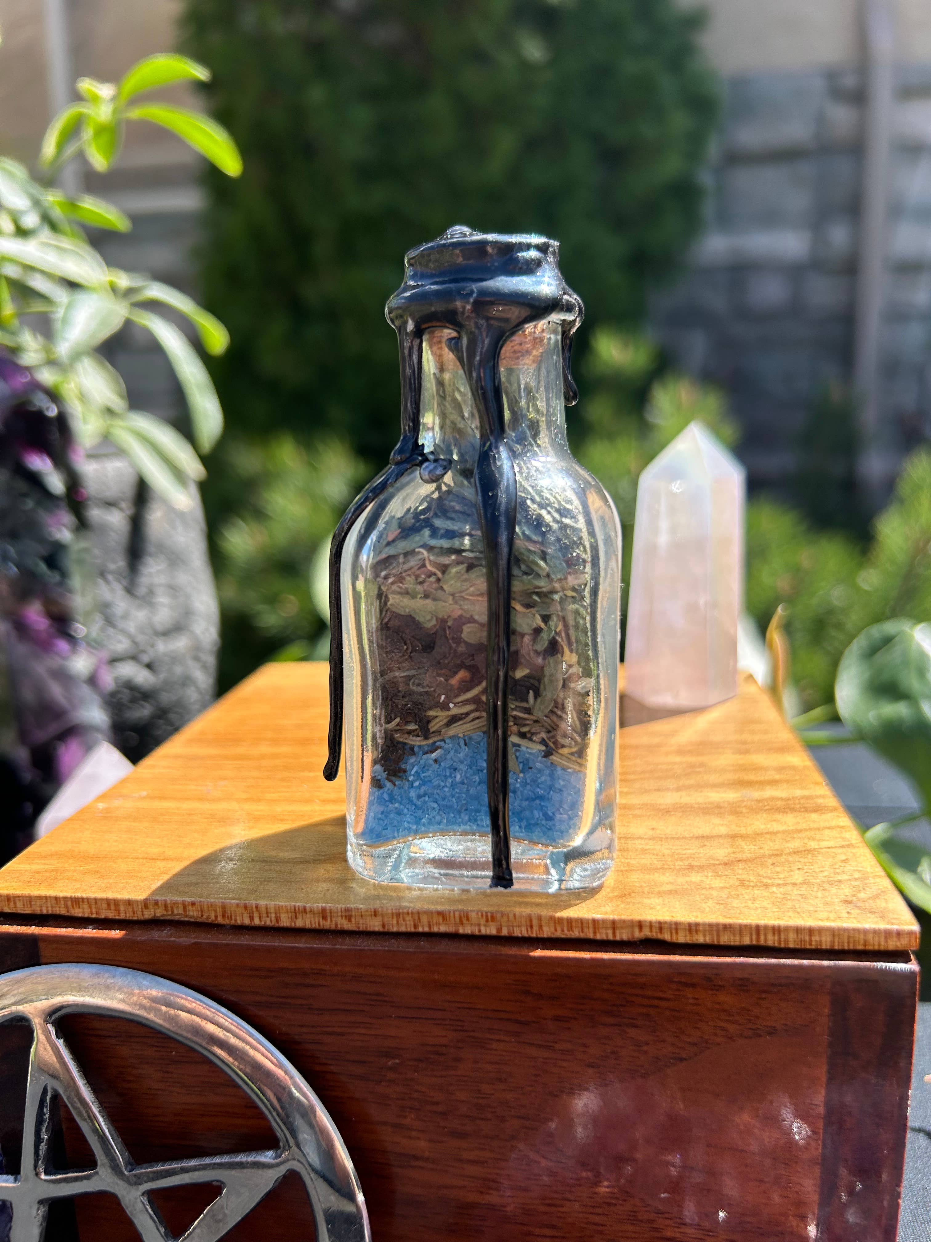 Each Spell Jar is filled with herbs, flowers, Road Opener Oil, Blockbuster Oil, crystals and all my intentions. Place on your altar, by your front door, in the center of your home or work, anywhere you feel drawn to keep it.