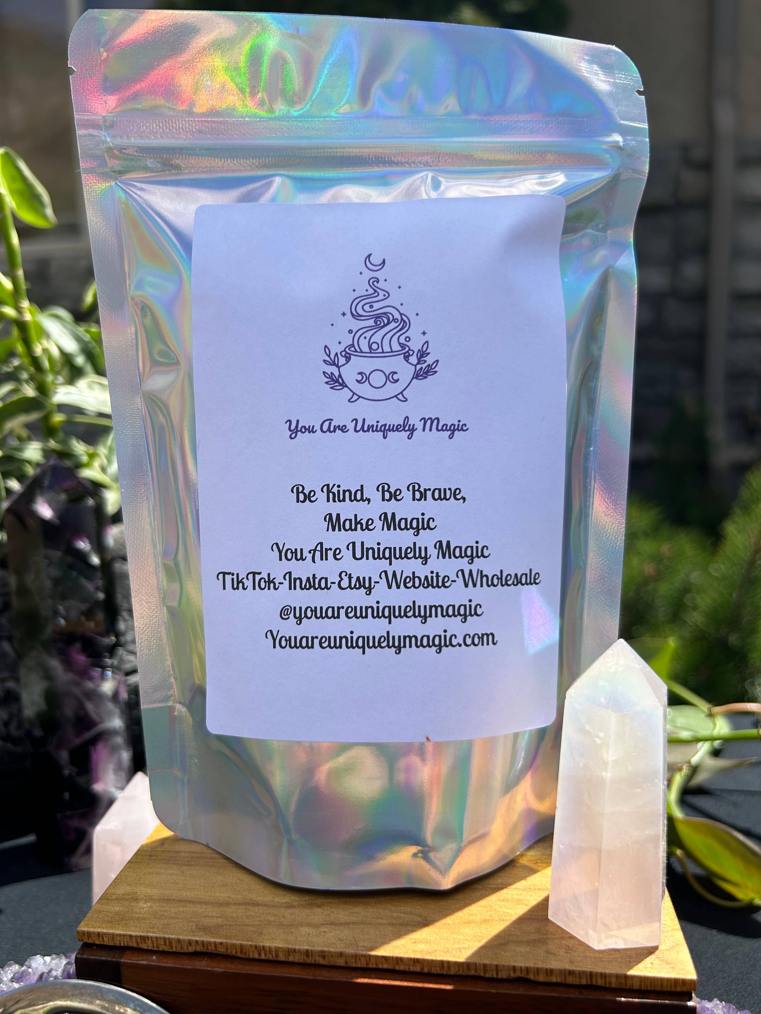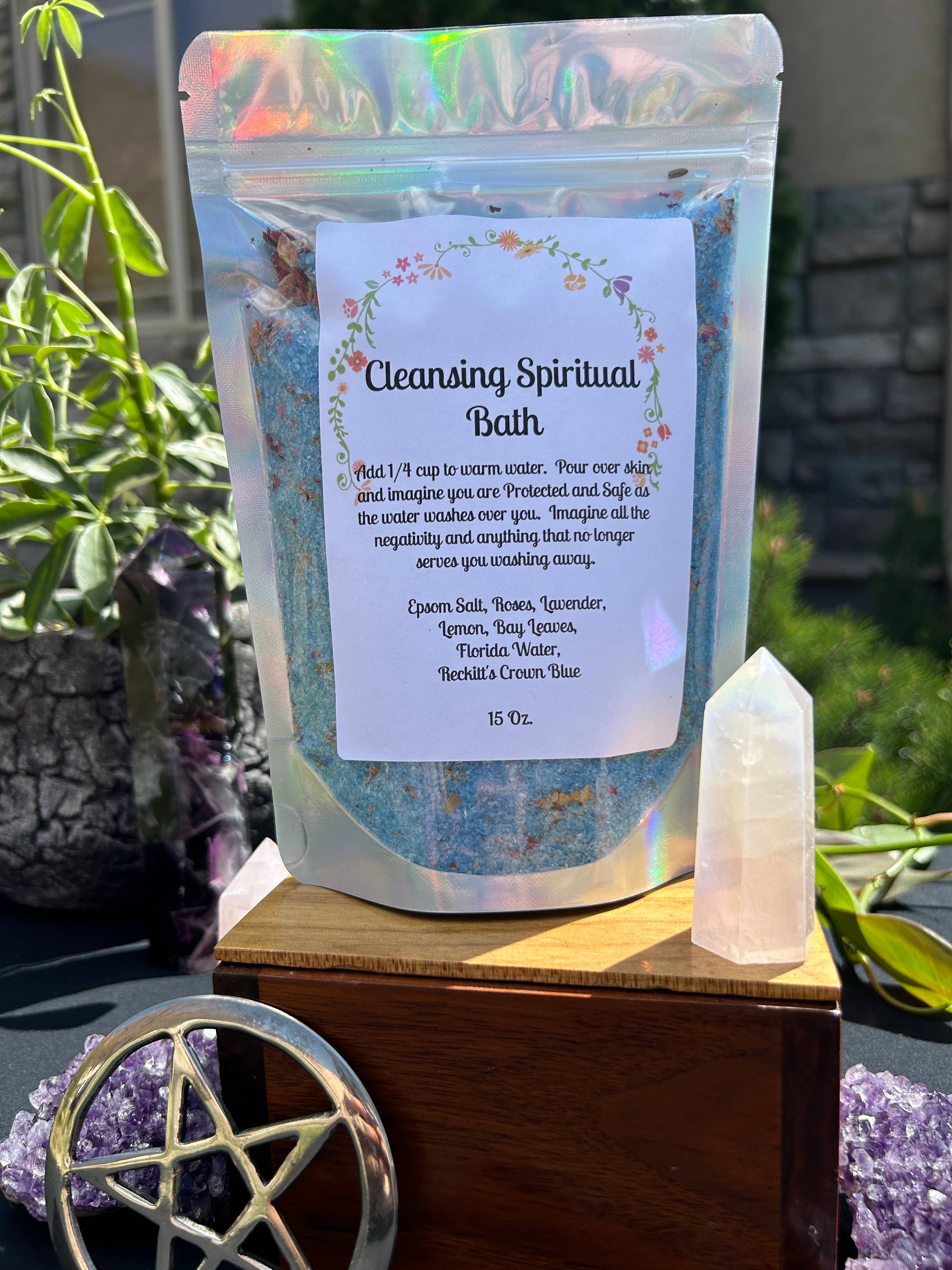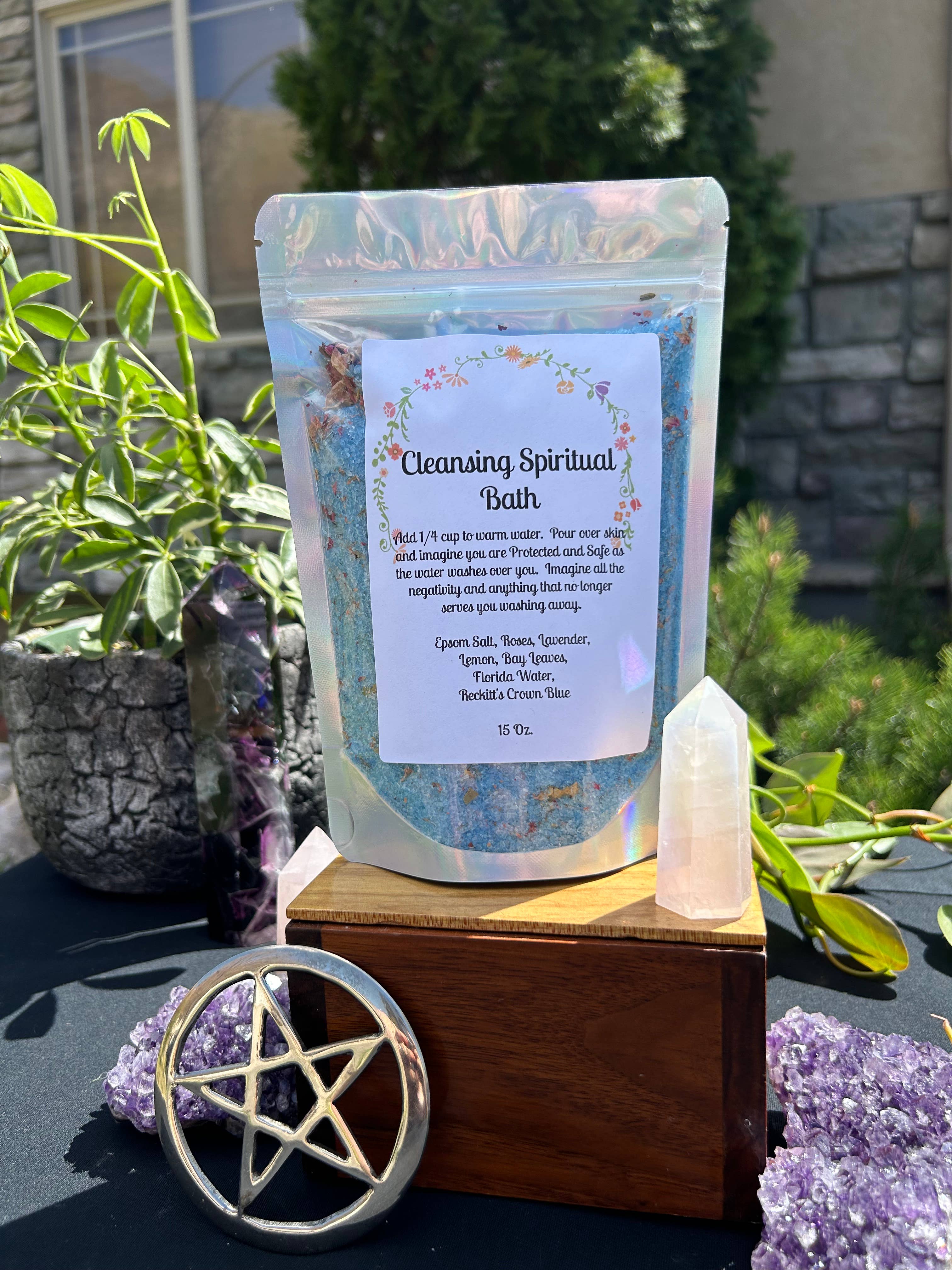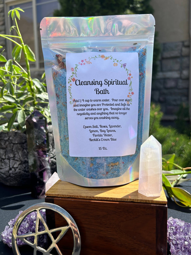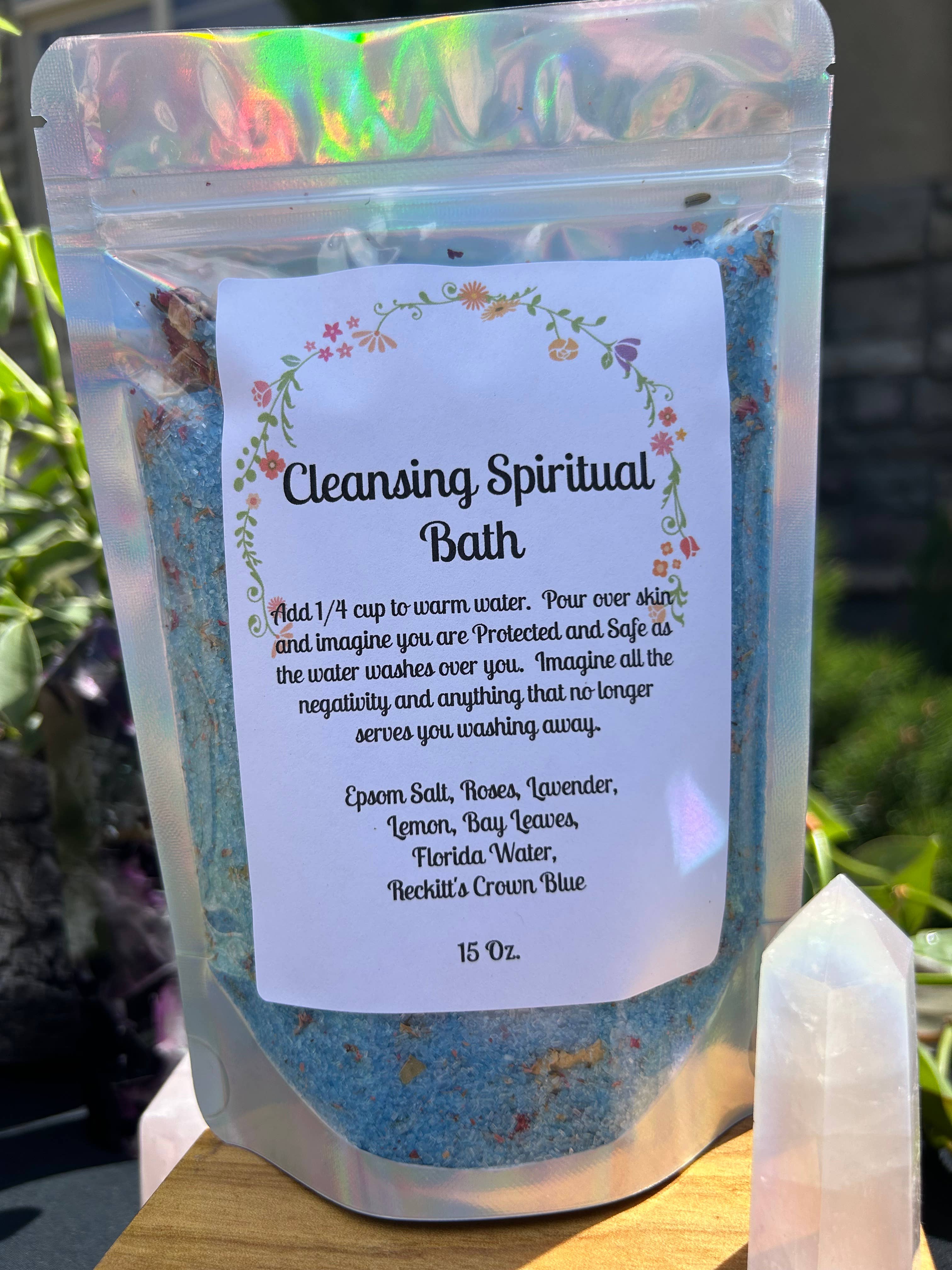 Sprinkle about 1/4 cup Cleansing Spiritual Bath under running warm water. Relax into the bath, imagine a bubble of love and protection surrounding you. Pour the bath water over your skin with intention, imagining all your worries and stress melting away.