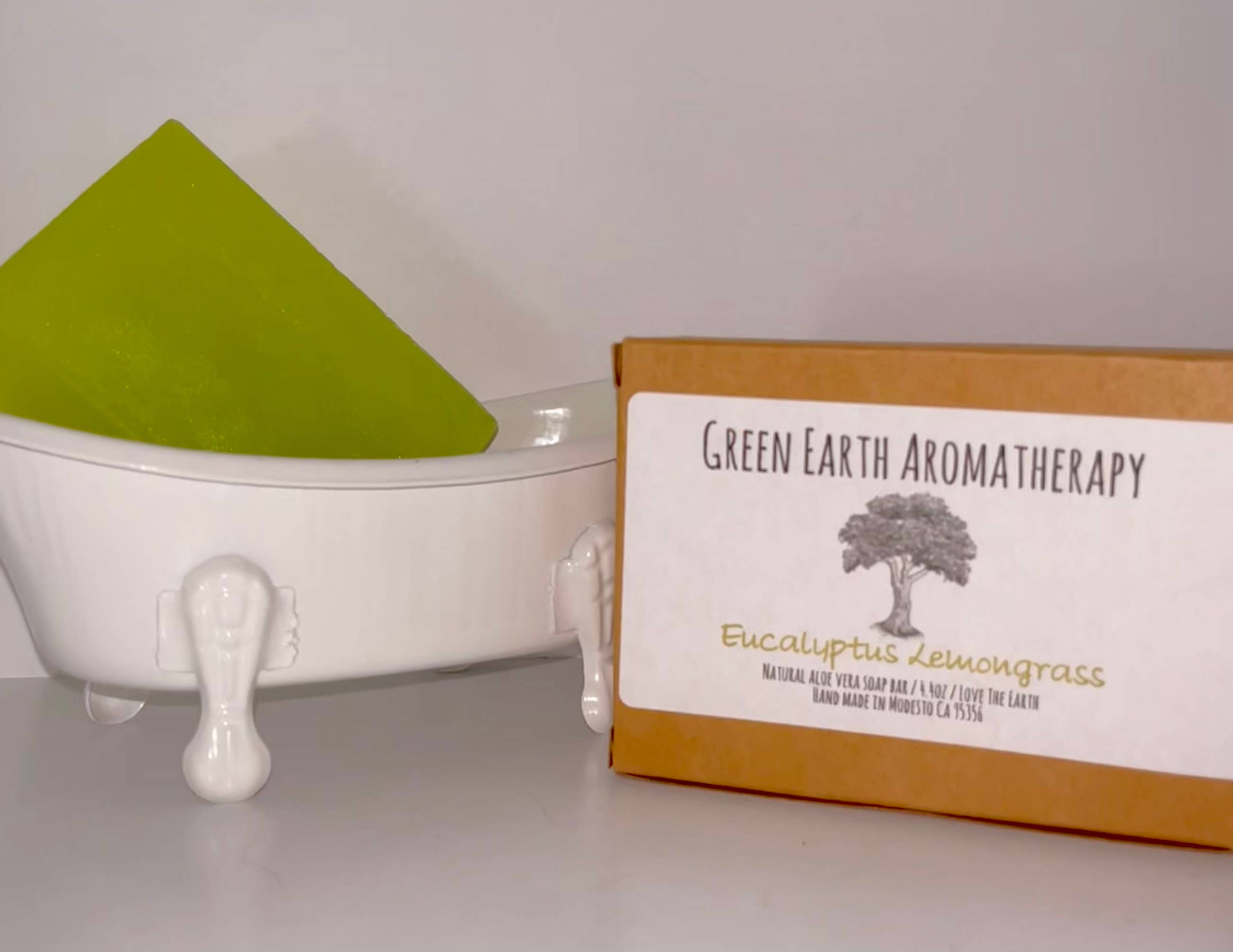 Relax with our all-natural Eucalyptus Lemongrass aloe vera soap bar.