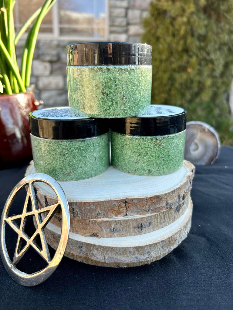 Each Handmade Green Salt is a blend of Patchouli, Peppermint, Cinnamon and other herbs meant to protect you, your home and those you love.