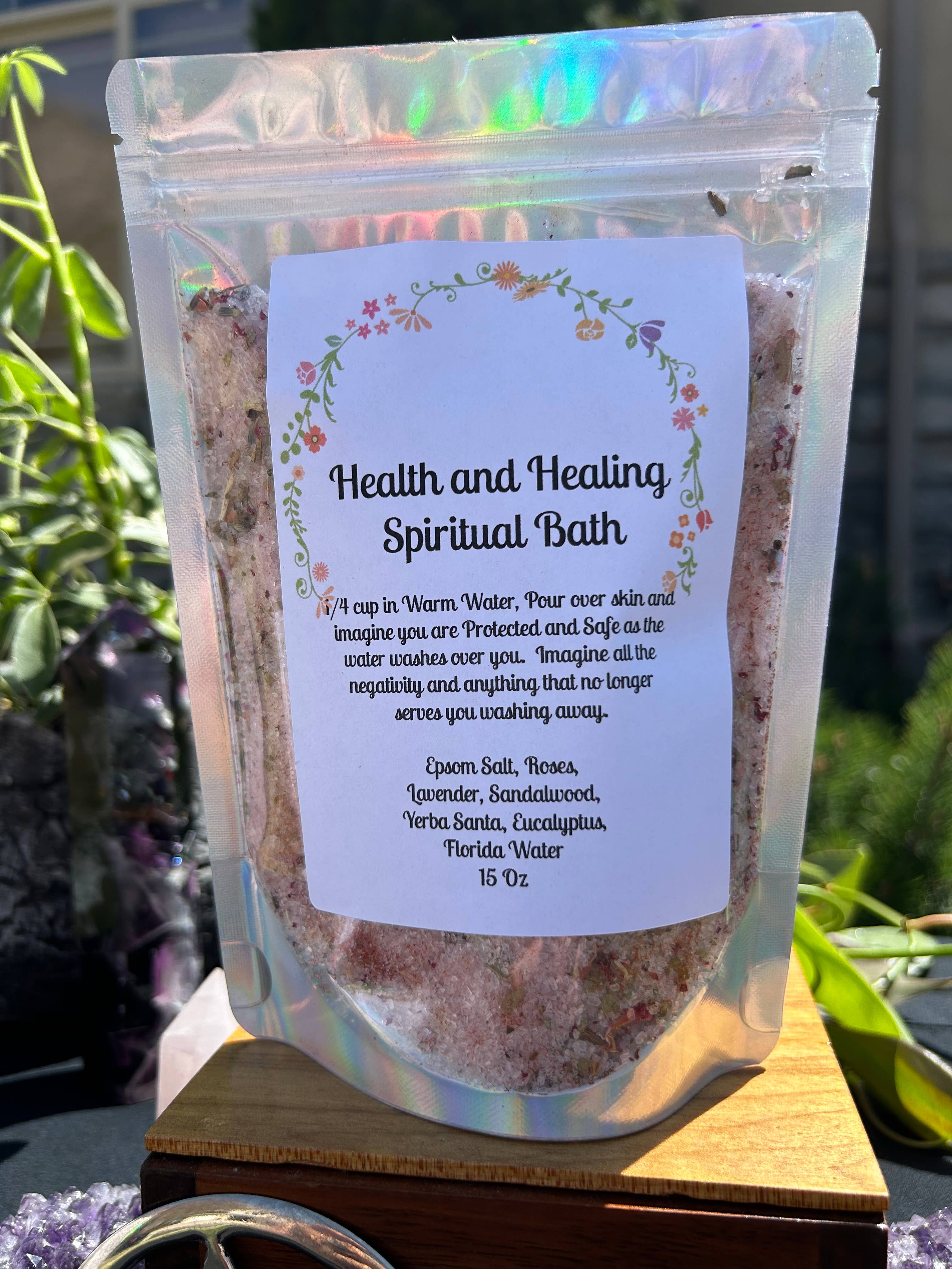 Health and Healing Spiritual Bath Salts with herbs, oils and intentions 15oz. package