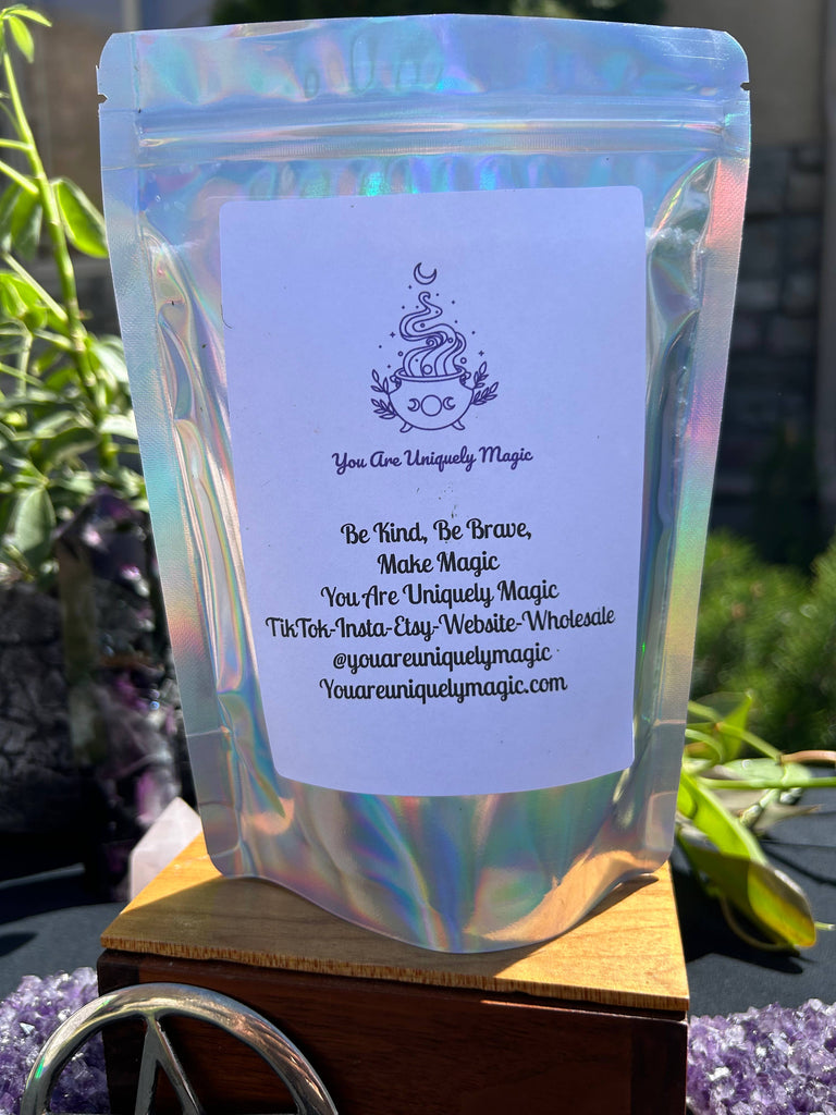 Sprinkle about 1/4 cup Health and Healing Spiritual Bath under running warm water. Relax into the bath, imagine a bubble of protection surrounding you. Pour the bath water over your skin with intention, imagining all your worries and stress melting away and protecting you. Imagine it washing away your fears, aches and anything you need to be rid of washing away and bringing peace and healing in it's place.