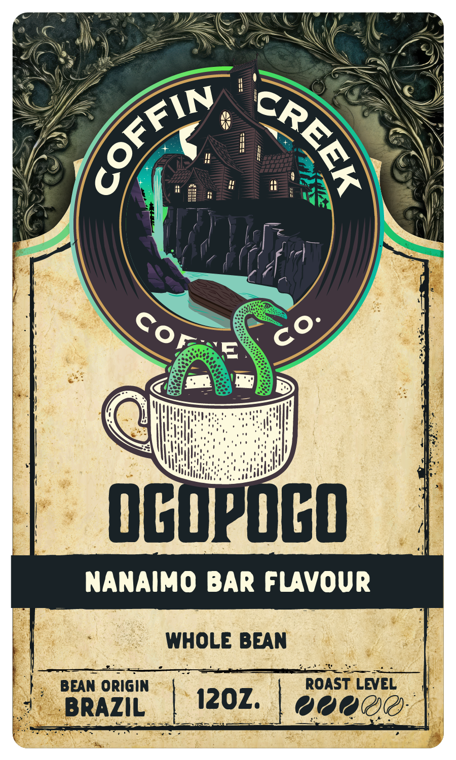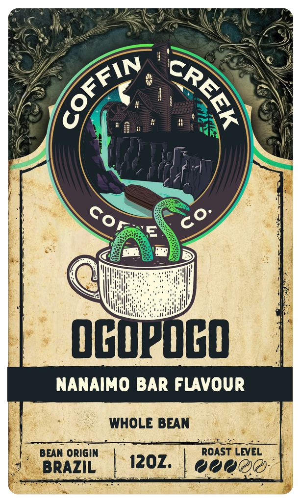 Beware, for The Ogopogo has emerged from the depths, bringing all the sinful sweetness of a Nanaimo bar to your cup! This devilishly delicious brew will take your coffee game to spine-chilling heights, blending rich coffee with the irresistible flavors of this Canadian classic. Imagine the legendary sea serpent of Lake Okanagan meeting the sweet allure of a Nanaimo bar—it’s a taste adventure that dives straight into culinary darkness. Unleash the playful spirits in your coffee routine and let the supernatural sweetness work its magic!