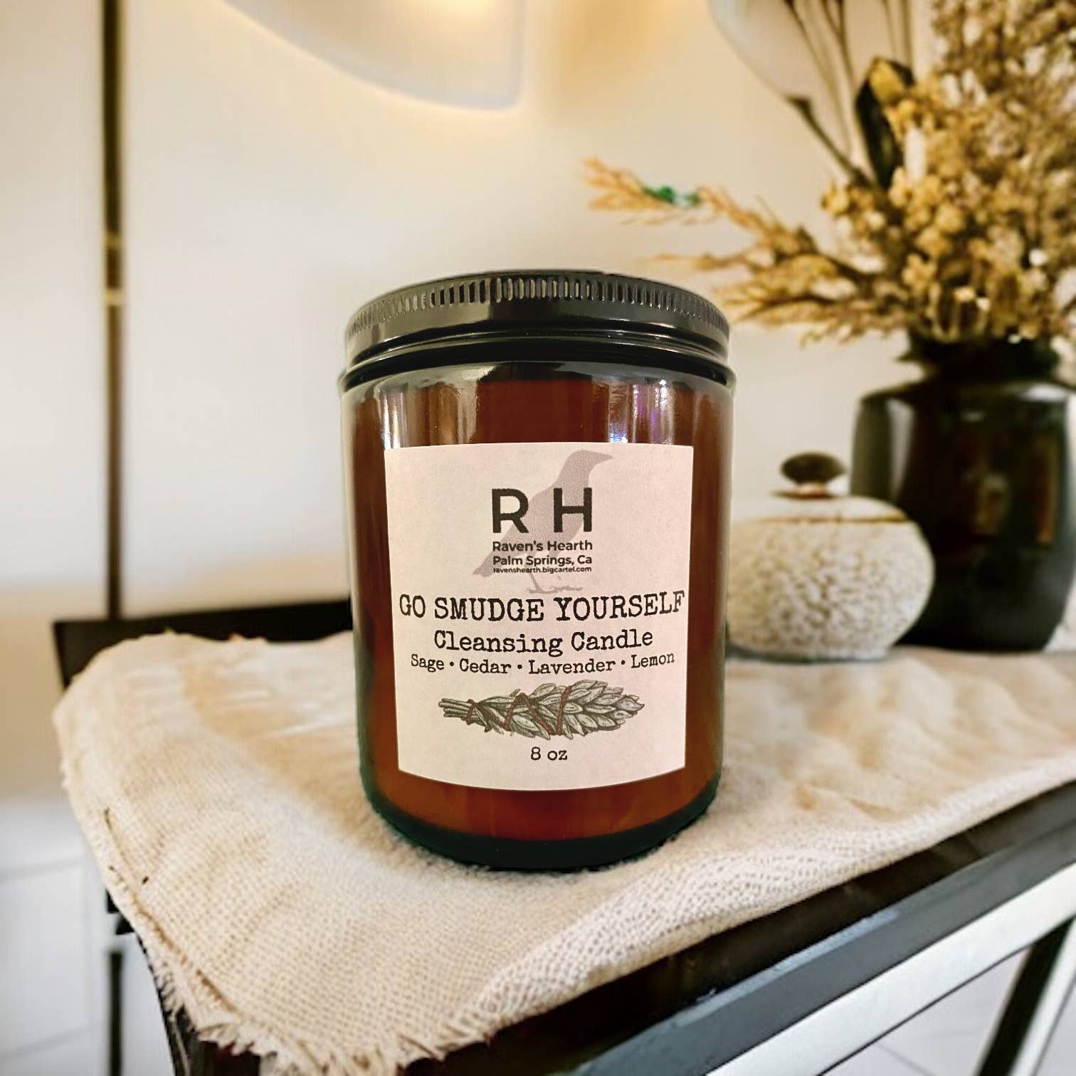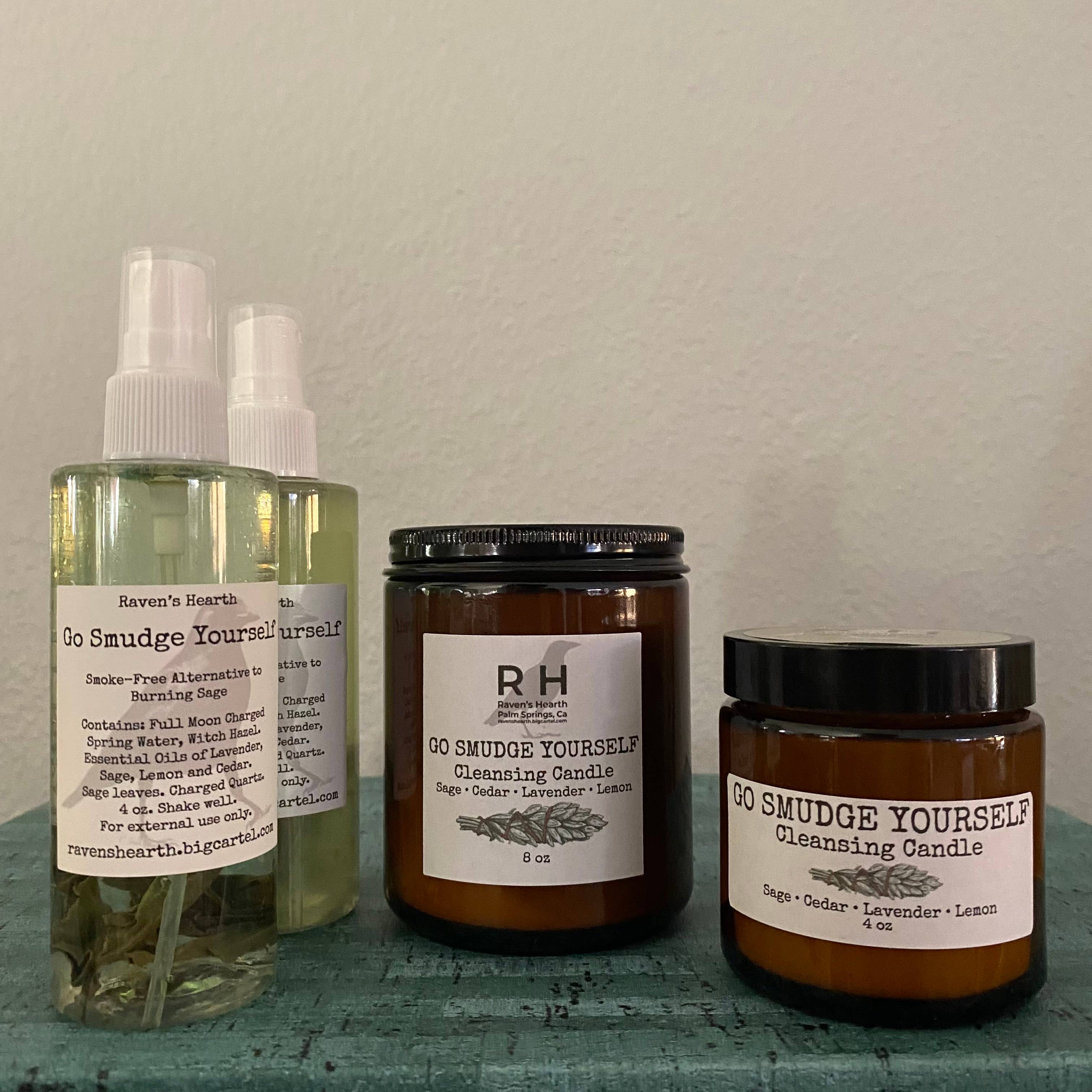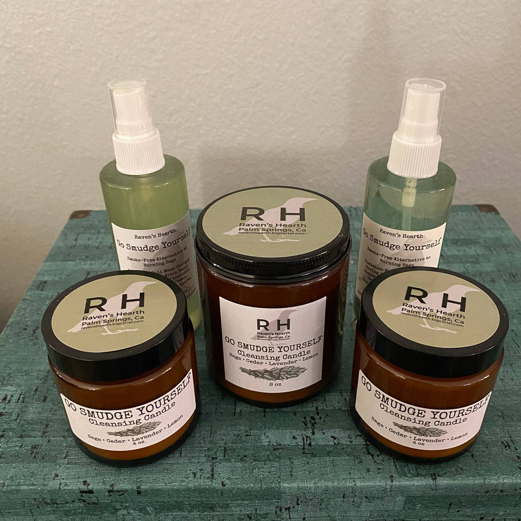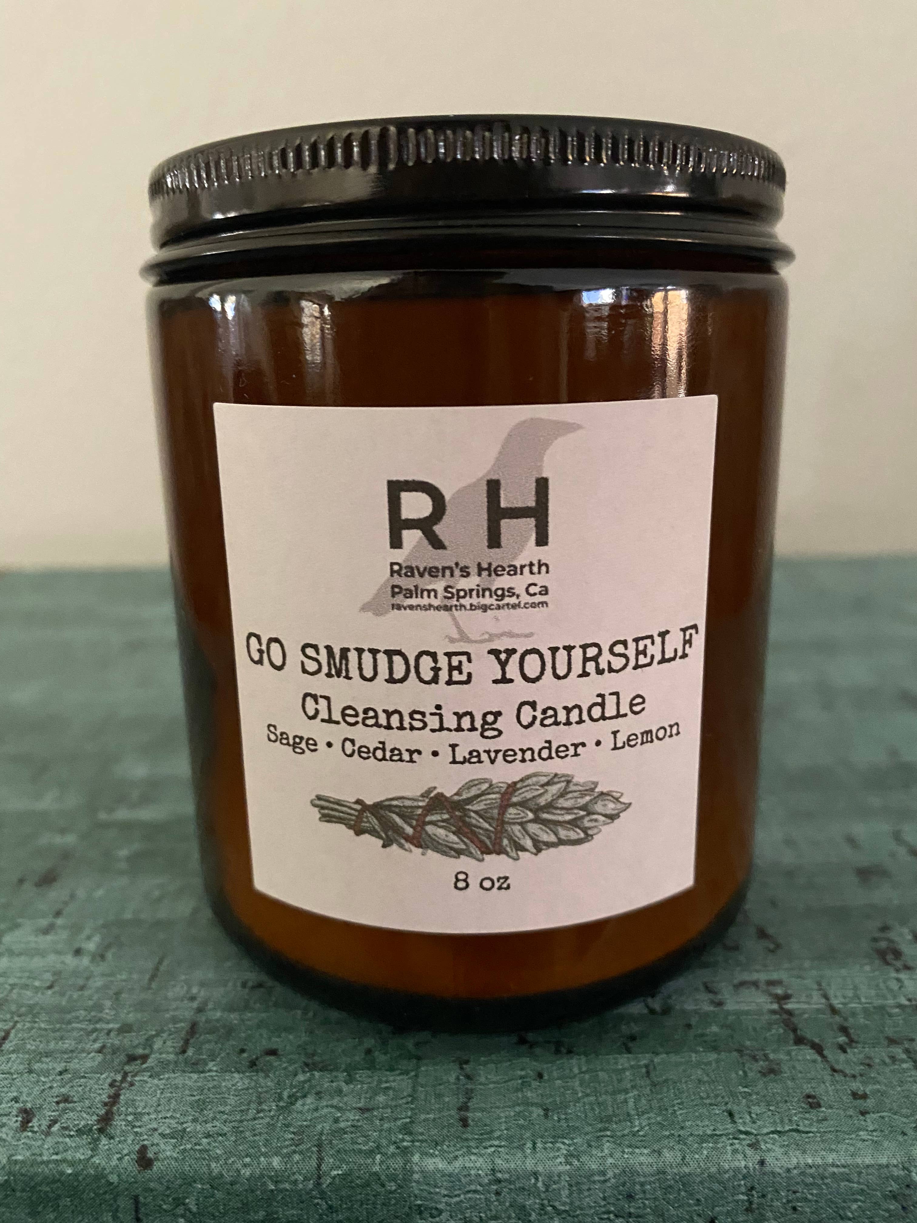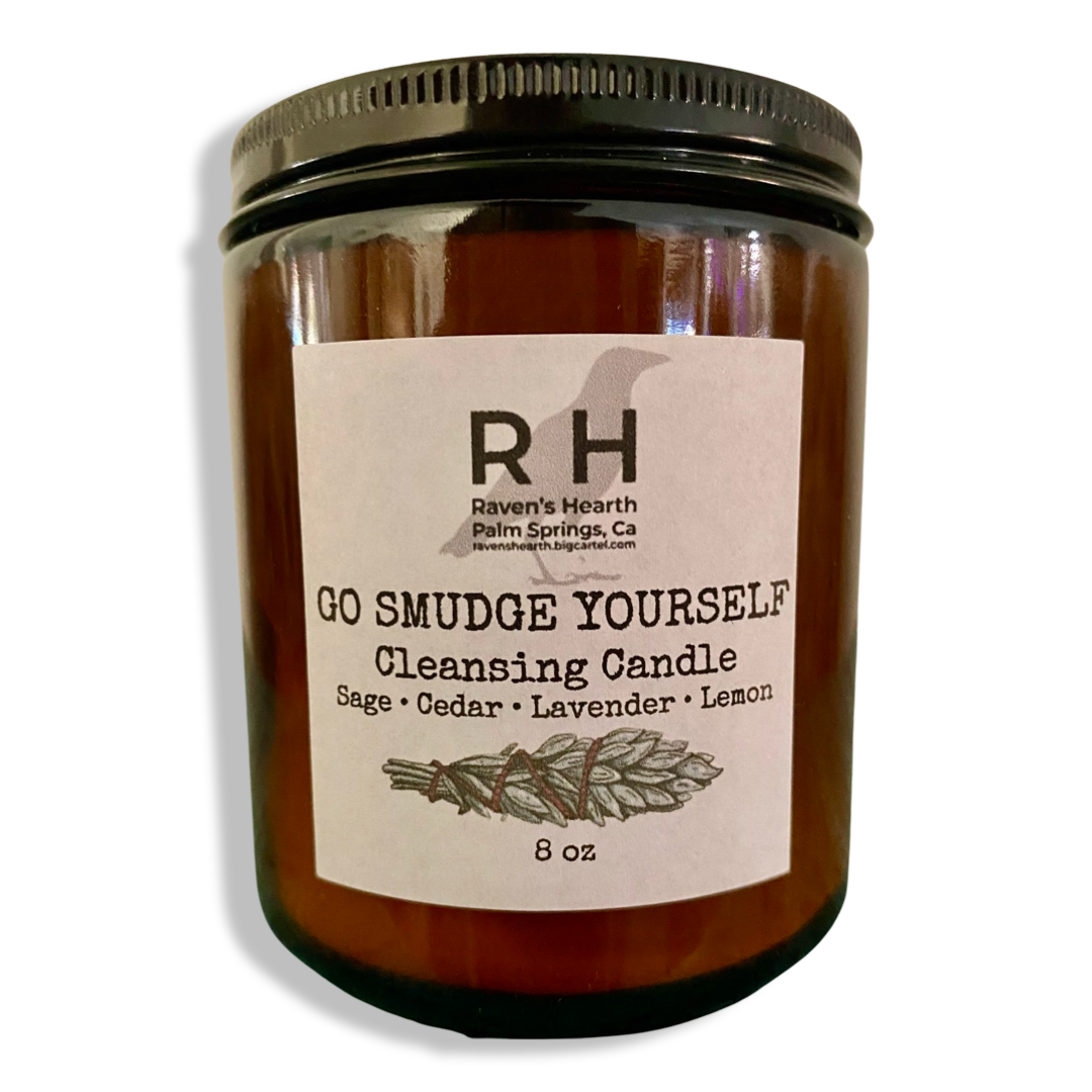 Our very popular Go Smudge Yourself formula is now available in candles — in both 4 oz and 8 oz glass jars.