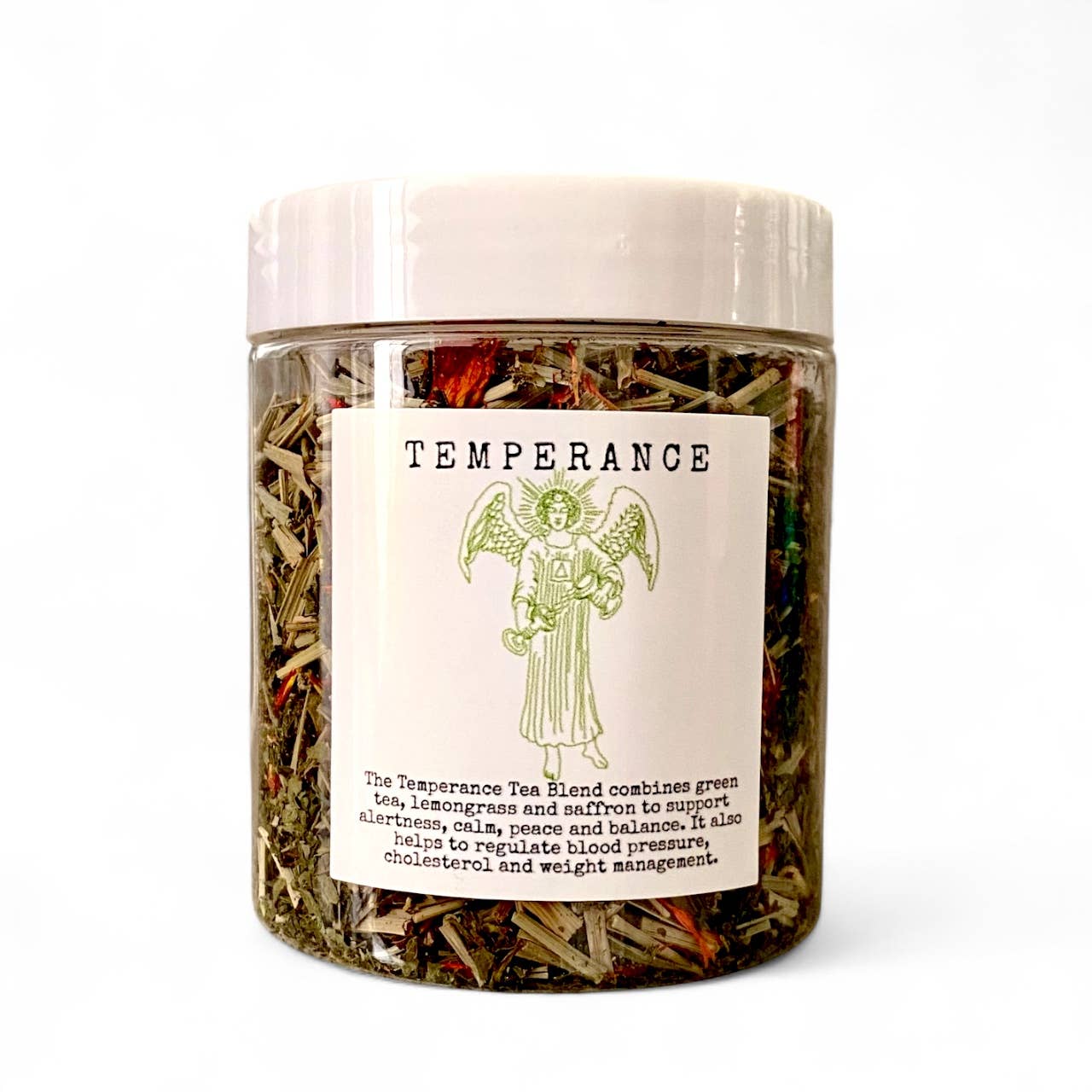 Experience the harmonious fusion of green tea, lemongrass, and saffron in our Temperance Tea Blend. This blend promotes alertness and tranquility, fostering a sense of calm and balance. With its natural properties, it helps regulate blood pressure, manage cholesterol levels, and support healthy weight management.